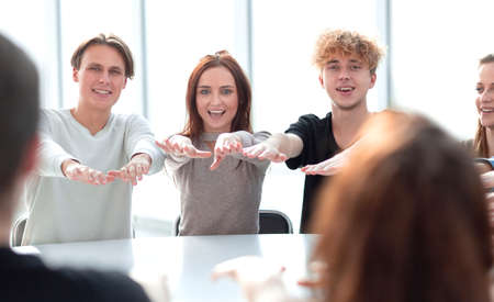 group of young business people applauding together