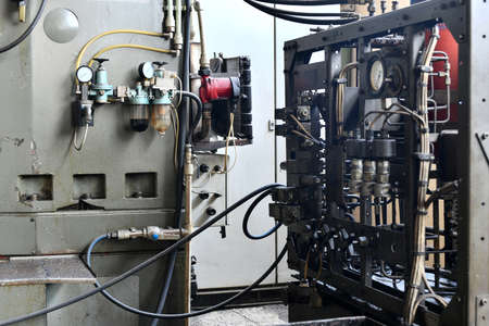 metal chromed manufacture machine with engine, bolts, close