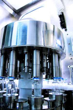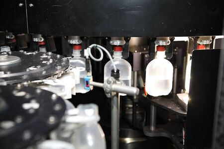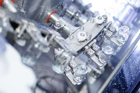 pharmaceutical industry. medicine glassware bottles washing in cleaning machine