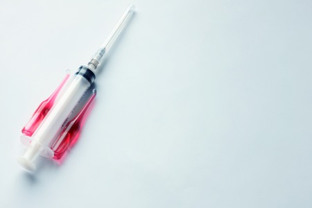 Syringe close up on a white background, medicine