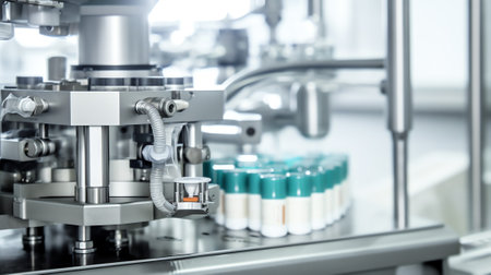 Generative AI pharmaceutical bottle medicine production line conveyer