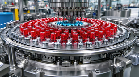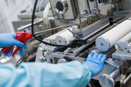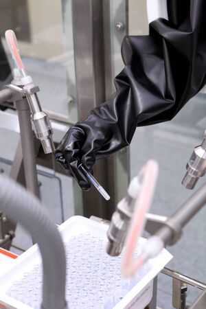Covid-19 vaccine production line in modern factory. Pharmaceutical industry