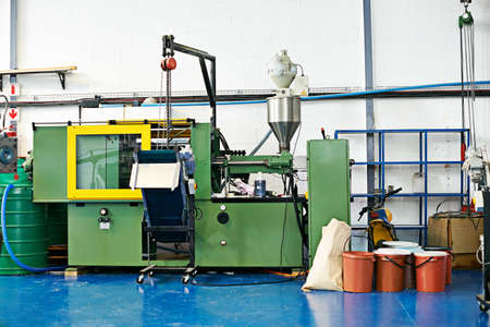 plant for the production of plastic parts. caterpillar mechanism on the factory