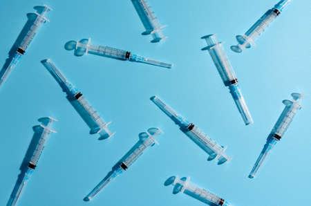 disposable syringes on blue background