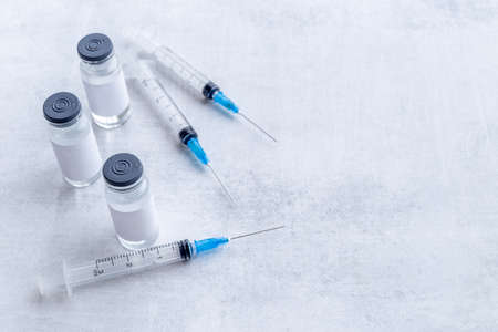 vaccine in bottles with syringe. Top view