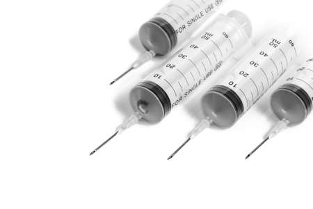 A row of syringes on white