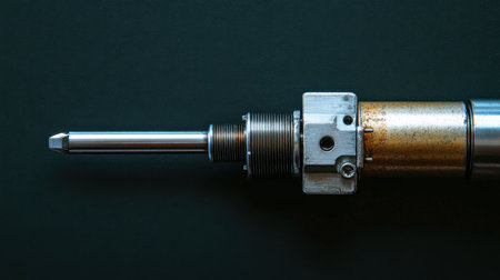 A close-up view of a precision engineering component, showcasing intricate metal textures and detailing, ideal for industrial and manufacturing contexts.