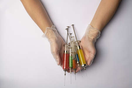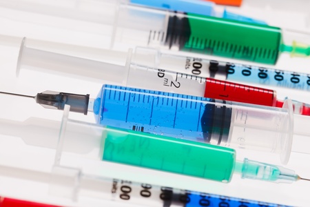 syringes with multicolored liquid on a background. High quality photo