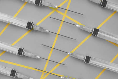 group syringes in yellow and gray color of the year background
