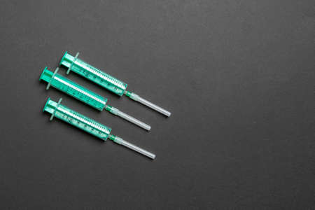 Medical Syringes with Needle on Black Background, Close up Syringe, Health care concept.