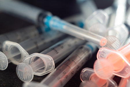A closeup shot of syringes and hypodermic needles