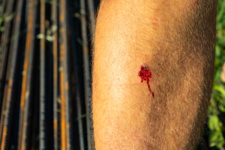 boy with a bleeding injury in leg, The boy had a wound on his leg.