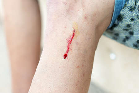 scratch injury wound abrasion chafe on the kids elbow hand