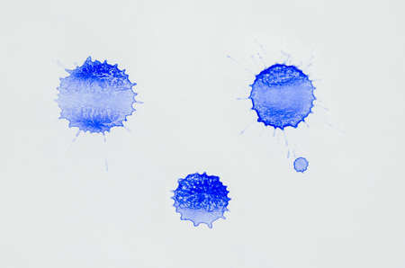 Abstract texture of splatters and blots of blue ink. Many spots and small dots.