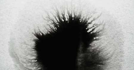 Abstract ink blots create unpredictable patterns on a neutral background