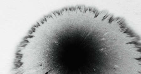Ink explosion, black tendrils spreading on white background