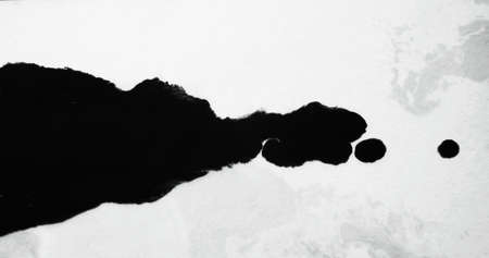 Black paint drop on white paper. Splatter overlay. Ripped border texture. Wet ink blot on uneven abstract background with defocused motion blur.