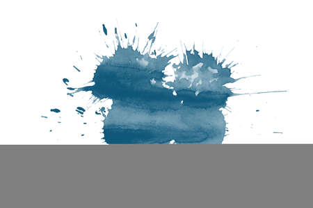 Blue color watercolor blot with splashes and drops isolated on white paper background, watercolor art
