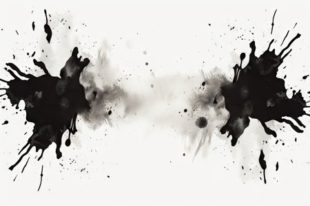 black ink splat on white paper background, abstract black and white background