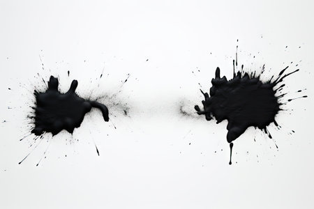 Dynamic black paint splatter on white surface background