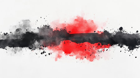 Bold black and red watercolors blend and splash across a white canvas, creating a dynamic abstract design that captures attention with its vivid contrast.