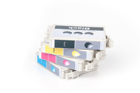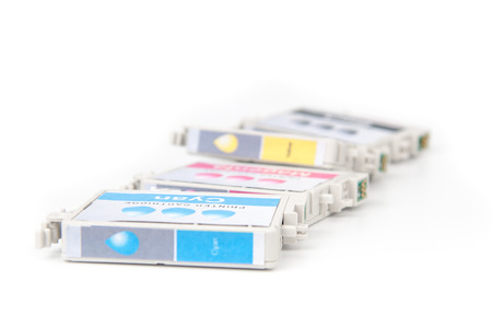 close-up shot of a CMYK ink cartridges for a color printershallow depth of field
