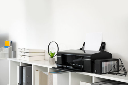 Side view of design printer in office with A paper size engraved on plastic body A4,