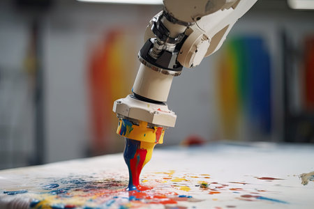 robotic painting and coating system with motion-capture sensors that create unique and colorful abstract paintings, created with generative ai