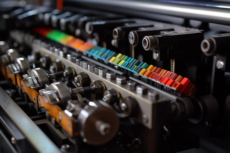 Generative AI Close up of an offset printing machine during production