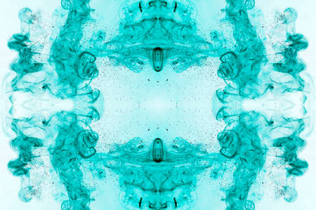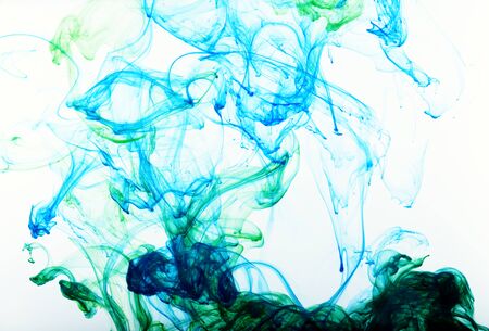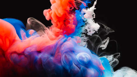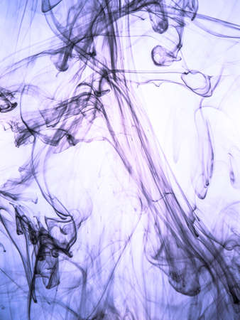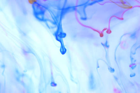 Ink swirl in a water on color background. The paint splash in the water. Soft dissemination a droplets of colored ink in water close-up. Abstract background. Explosion of color splashes acrylic ink.