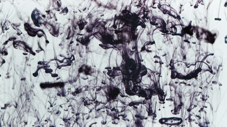 Liquid black ink in water. Marble art effect. Creative abstract artistic background. Space for text. Small bubbles and dots details.