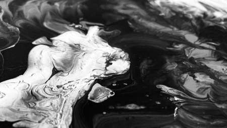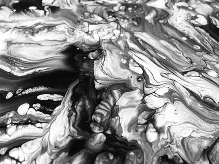 Close Up Black and White Colors Fluid Pouring Abstract Art Acrylic Alcohol Ink Painting Texture Background