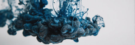 A captivating abstract image of blue ink gracefully dissolving and swirling in water against a textured white background. The delicate plumes and tendrils of color create a dynamic and artistic visual, representing creativity, flow, and diffusion.