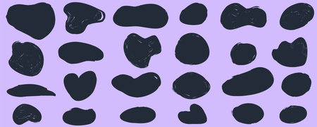 Amoeba shape marker figure abstract set. Amoeba irregular blob varios form. Black color organic bubble liquid. vector illustration. Round figure organic form.