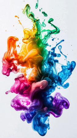 Vivid Abstract Paint Splash on White Canvas with Vibrant Colors and Dynamic Strokes