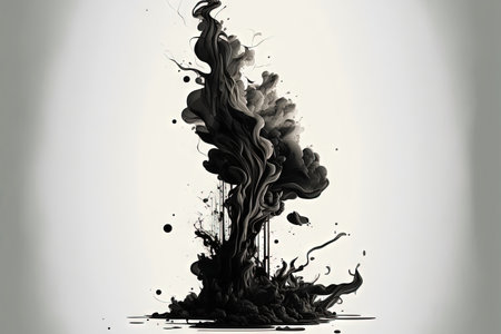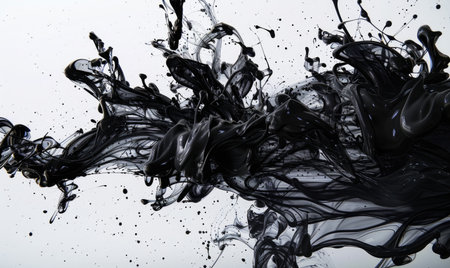Ink explosion, black tendrils spreading on white background