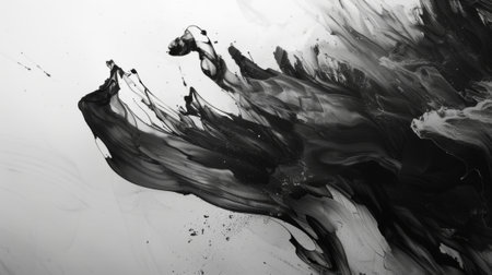 This artistic features composition flowing lines and ink splash details in monochrome black and white. The high contrast creates a sleek and modern visual effect, embodying minimalist abstraction.