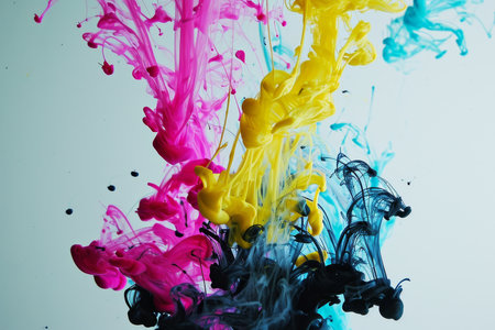 An artistic representation of ink blending, showcasing a dynamic interplay of colors and textures.
