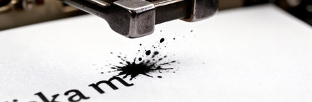 Close-up of vintage typewriter spilling ink on white paper. That the image is generated using AI.