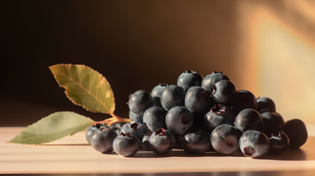 Chokeberry (Aronia melanocarpic) on a wooden table