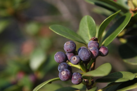 wild purple berries with green leaves on the island of Sao Miguel, Azores, Portugal