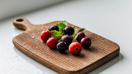 AI Generated. Collection of Fresh Berries on a Rustic Wooden Cutting Board