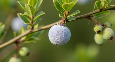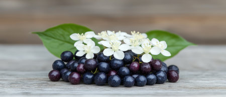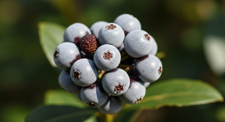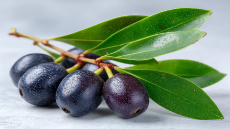 A stunning arrangement of glossy green leaves and dark berries on a soft light background. Ideal for nature lovers, wellness themes, and botanical aesthetics.