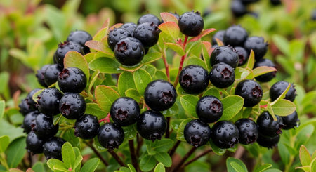 Ripe blueberry bush in nature, a sweet and healthy refreshment generated by artificial intelligence