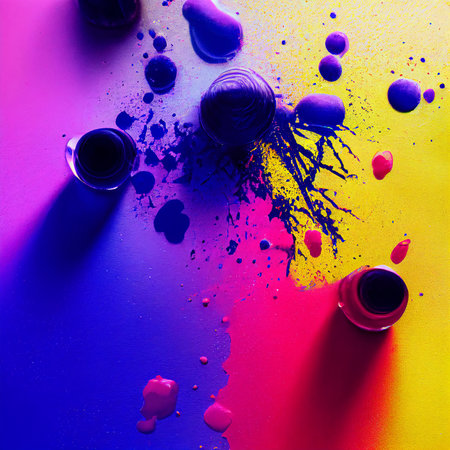 Colorful splashes of paint create an artistic and vibrant background at a creative studio