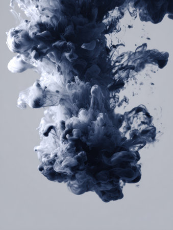 Dark ink disperses in water, creating captivating swirling patterns that blend and dance, highlighting the fluidity and beauty of movement.