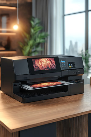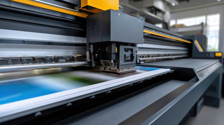 A state-of-the-art printing machine showcases precision and innovation in a modern workspace.