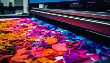 In a state-of-the-art printing workshop, vibrant hues cascade across large sheets as cutting-edge machinery works diligently.