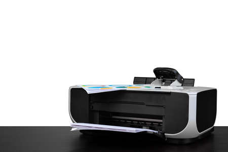 Laser home printer on table against white backgorund