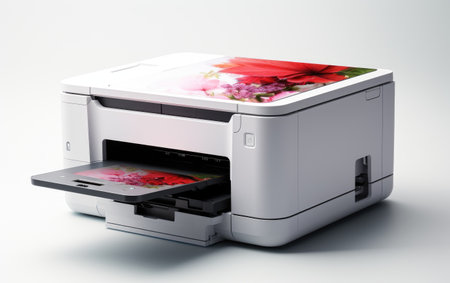 Beautiful White Printer With Red Images Isolated on White Background